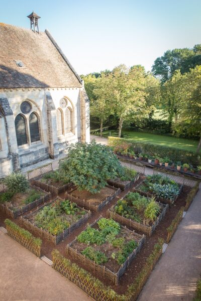 In total, the vegetable garden is home to 130 varieties of edible plants and 60 fruit trees (apple, pear, cherry), either trellised or open-winded.