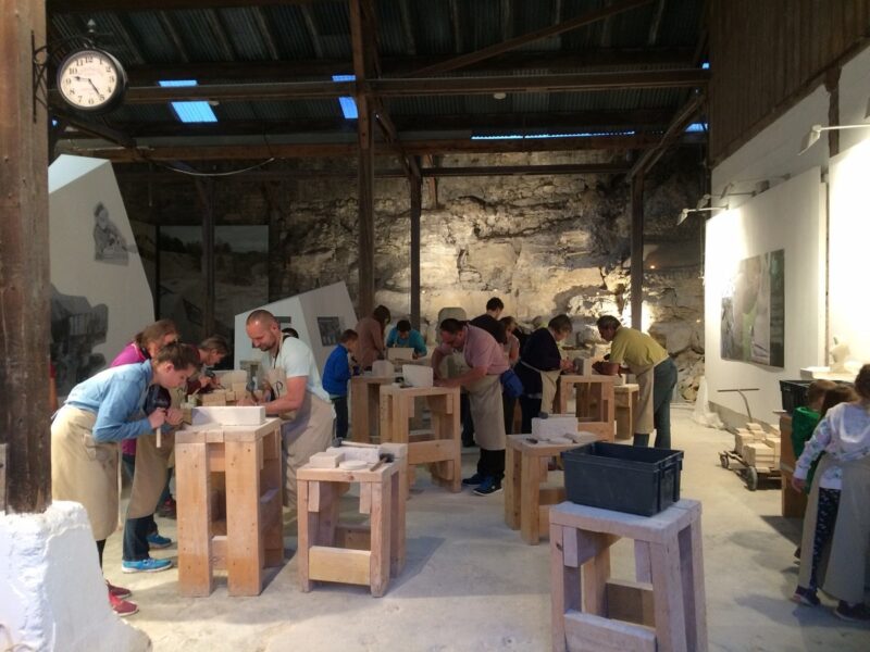La Maison de la Pierre vous invite à une immersion dans le monde souterrain de la carrière Parrain, suivant un parcours avec effets lumineux et sonores. Si vous le souhaitez, cette plongée à plus de 20 mètres de profondeur pour écouter le silence est complétée par le plaisir du contact avec la matière, proposé dans des ateliers de sculpture.