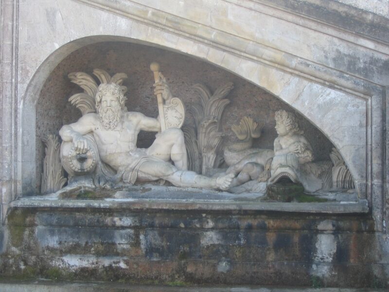 Il offre les points de vue les plus admirables de la visite avec ses vastes miroirs d’eau reflétant le ciel, ses nombreux jets d’eau et fontaines ainsi qu’un ensemble exceptionnel de statues.